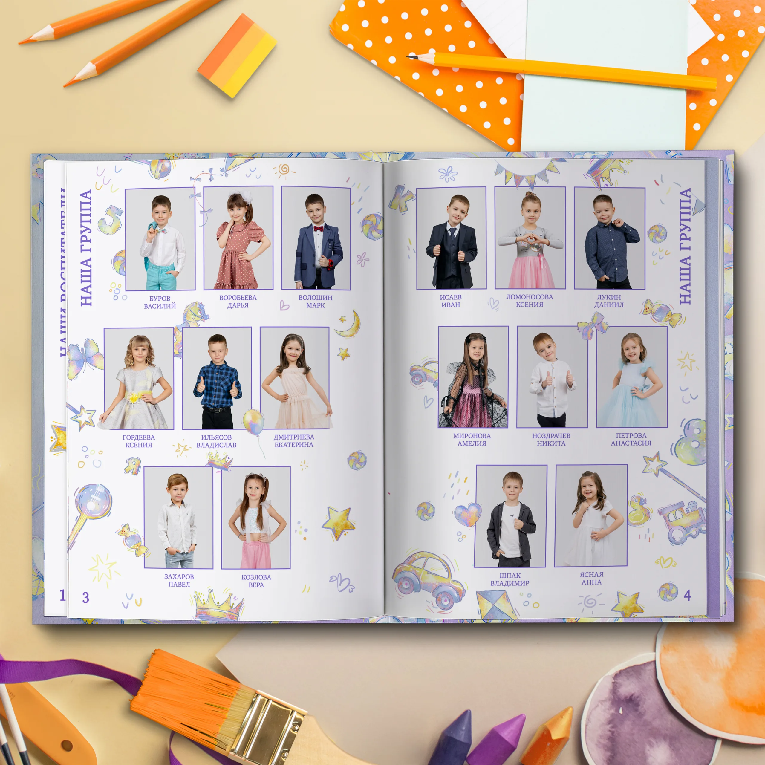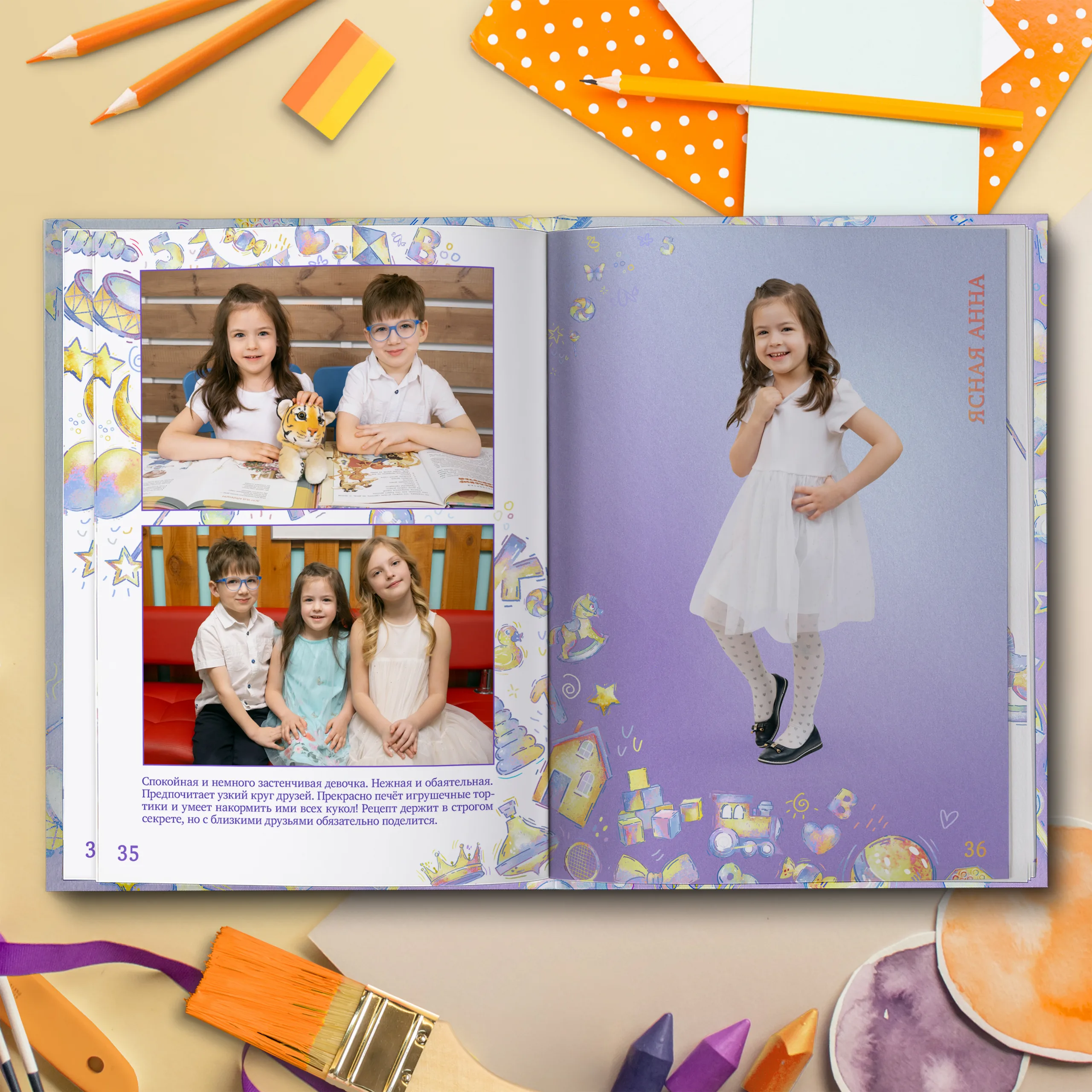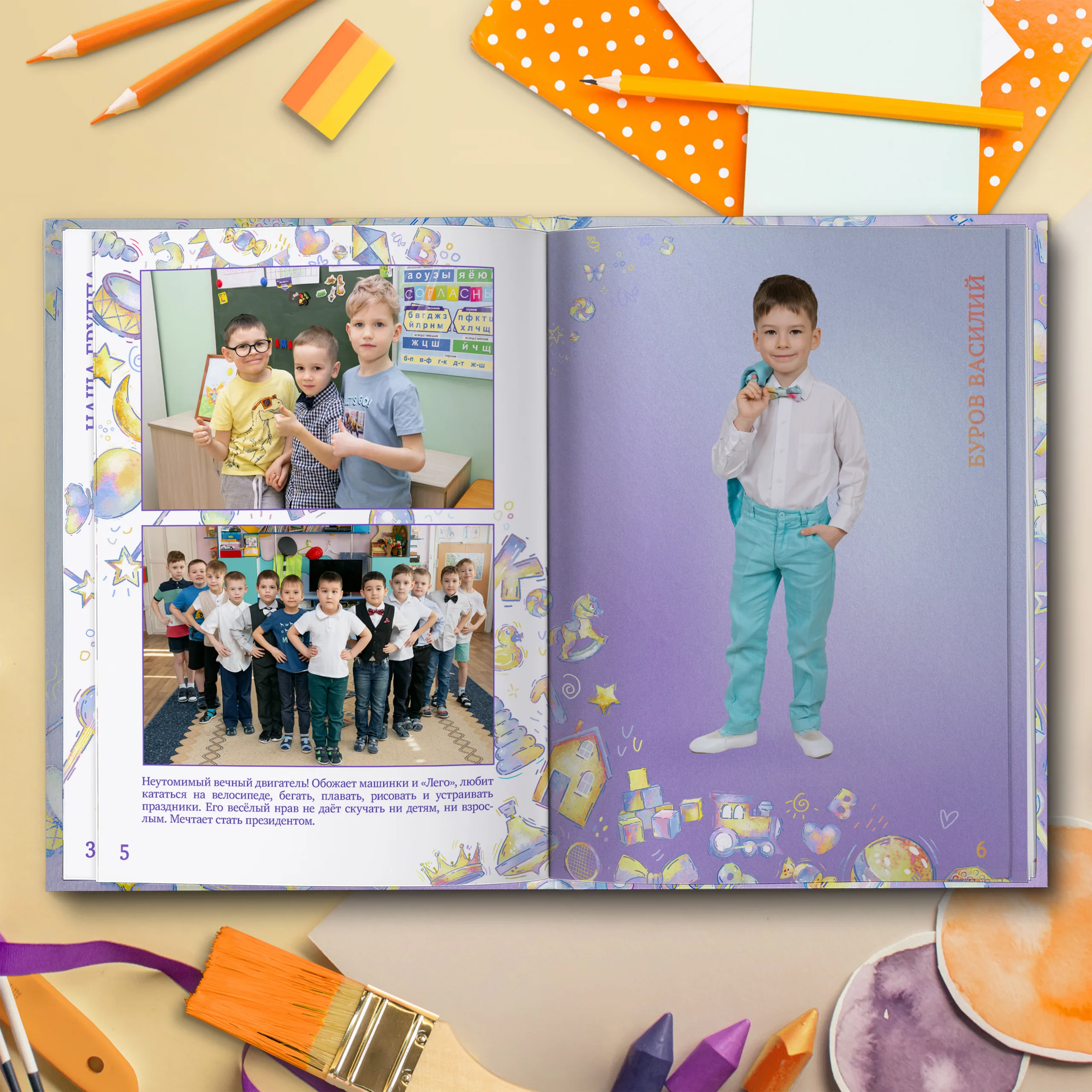 3ий разворот и далее — по 2 личные страницы на ребенка