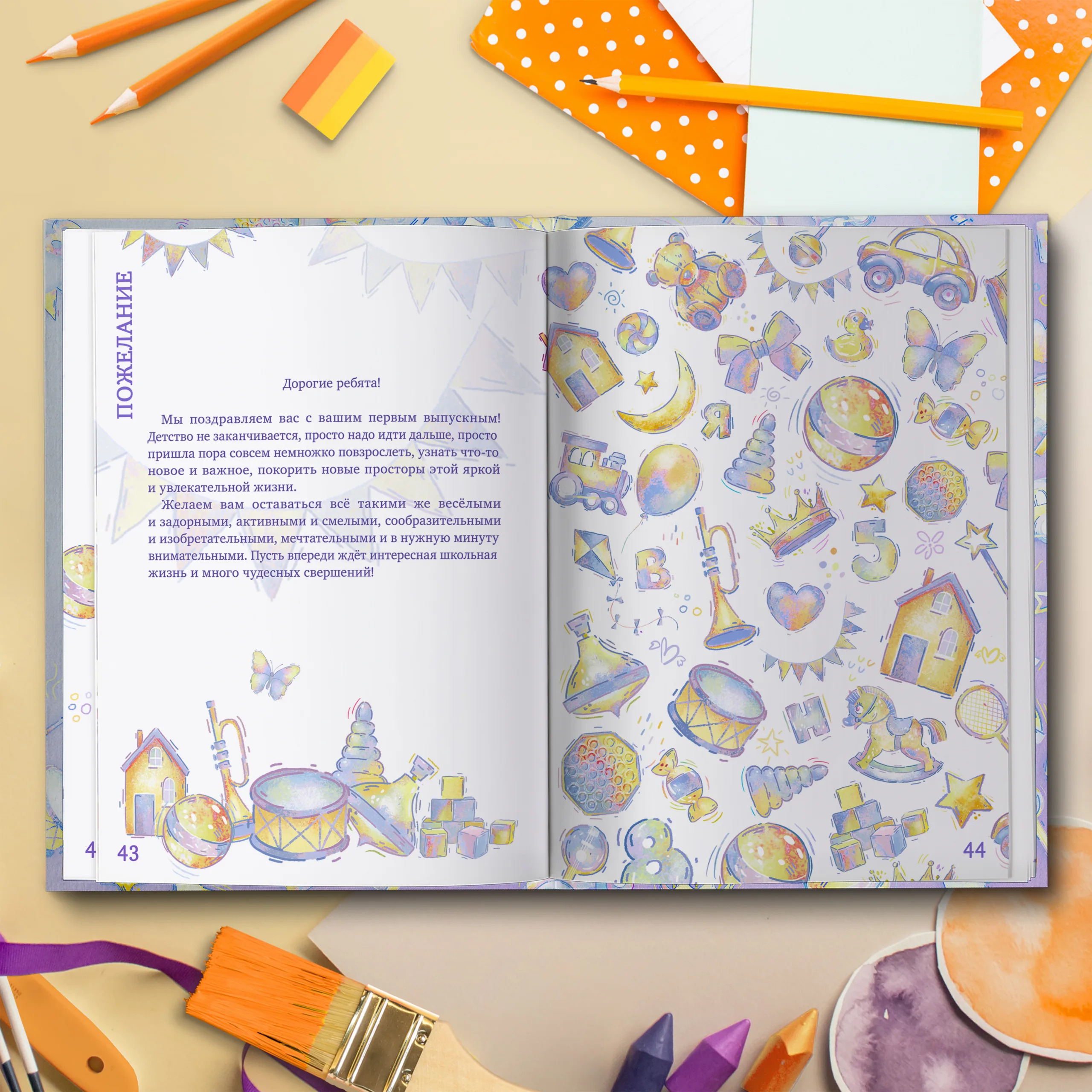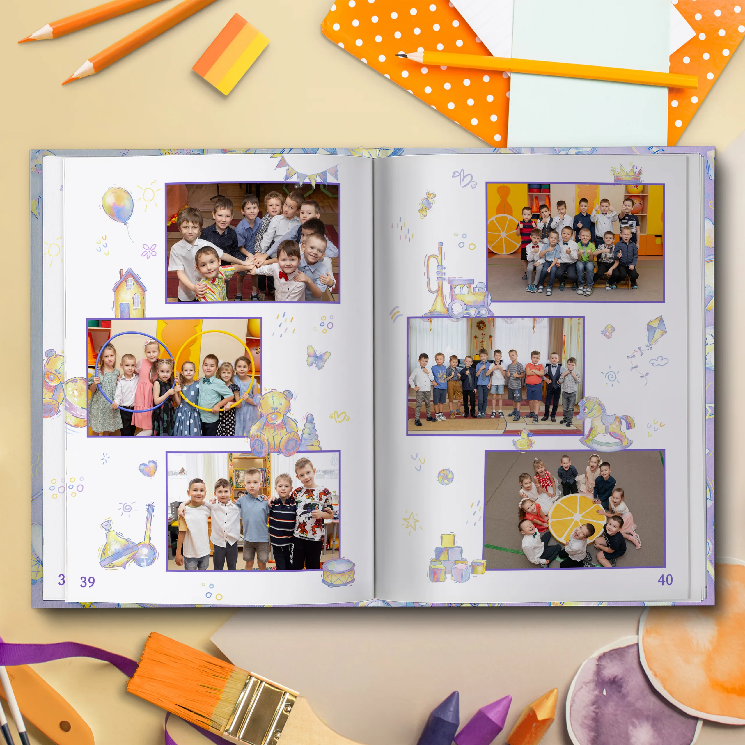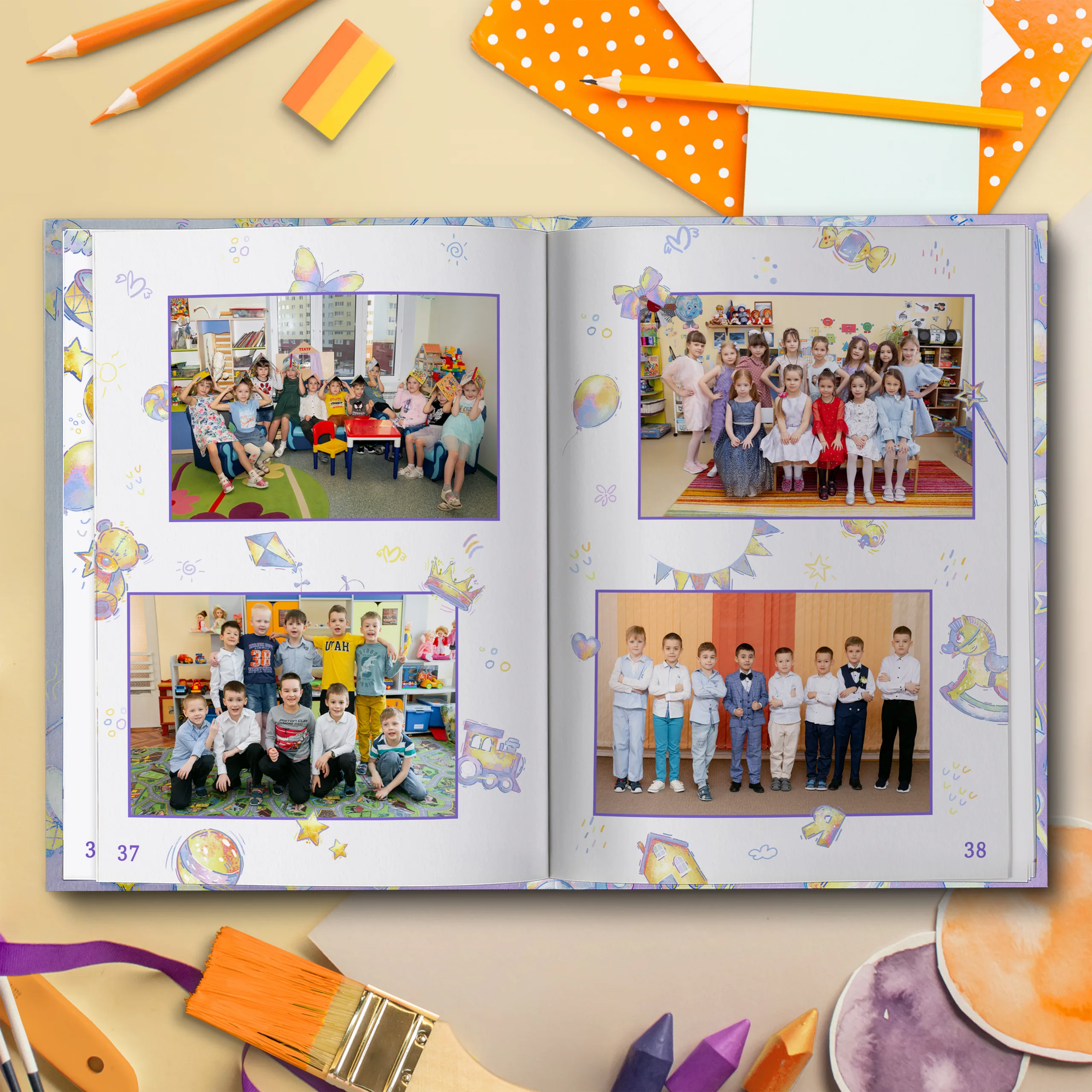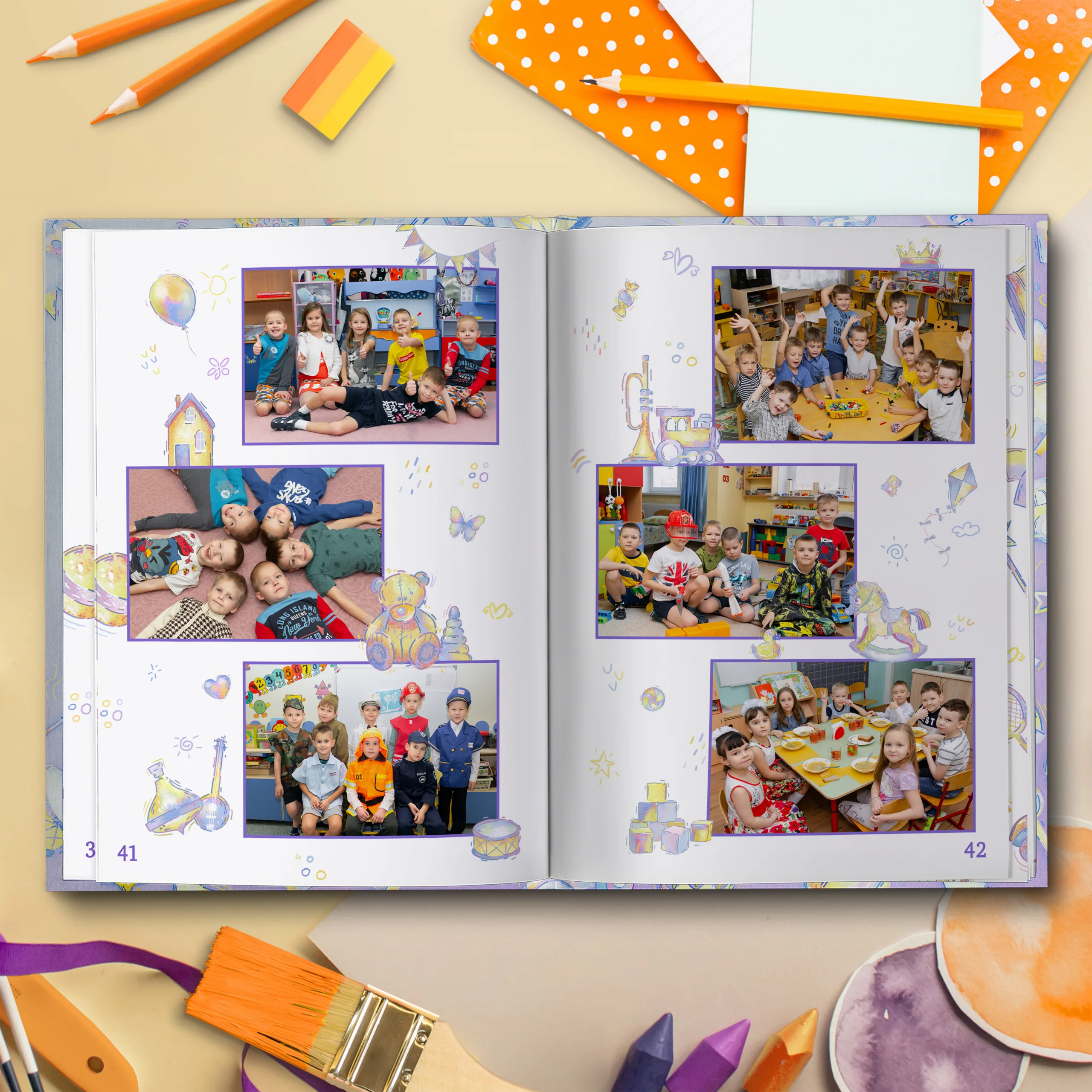 3ий разворот и далее — по 2 личные страницы на ребенка