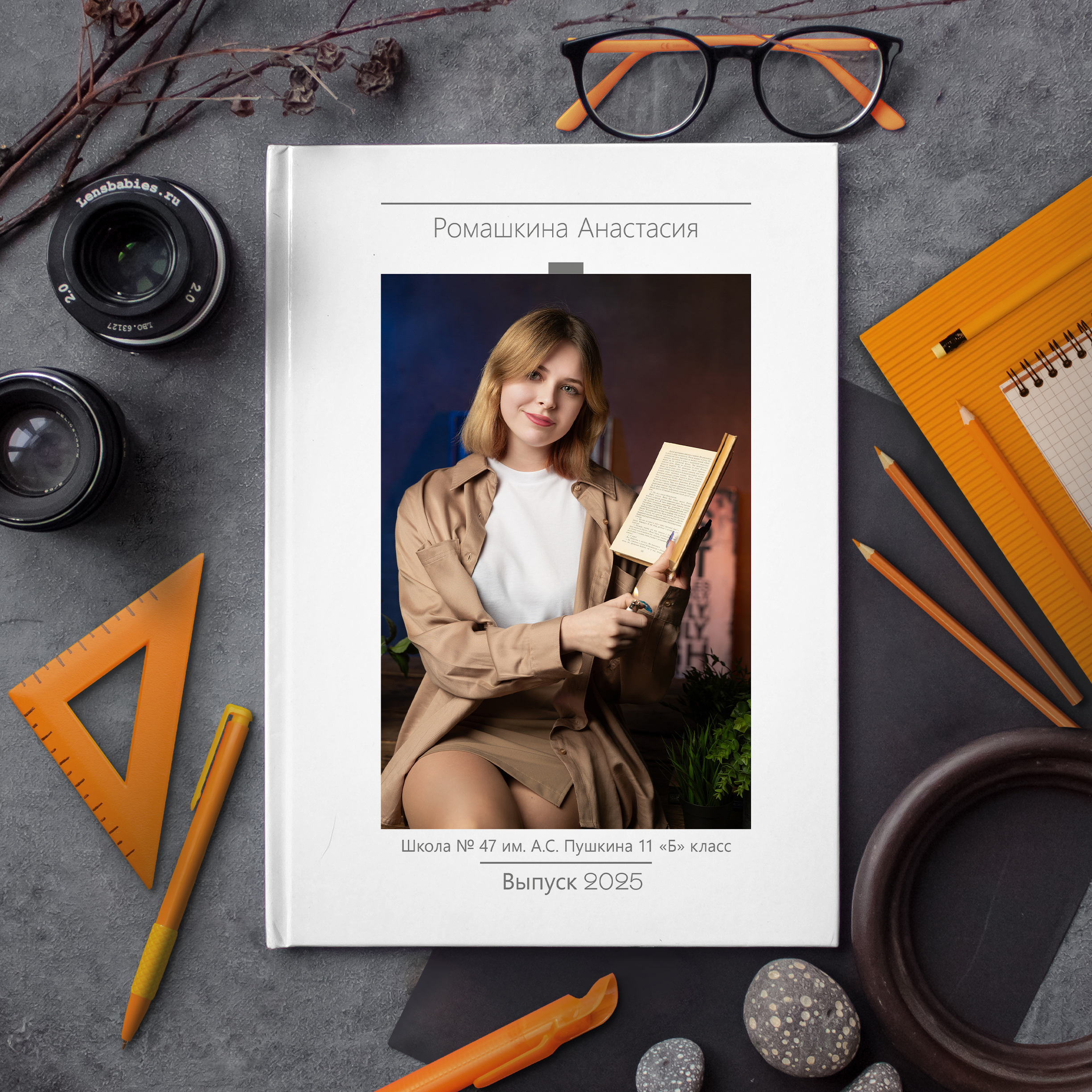Вариант «Репортажный» представлен с одной студийной фотографией выпускника в три четверти и двумя репортажными фото на личном развороте.